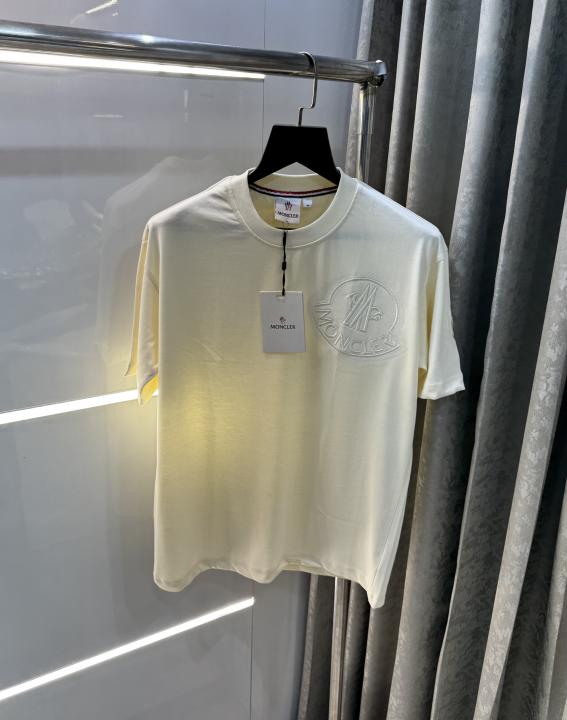 Moncle r Cream Embroidery Logo Imported Oversized T-Shirt